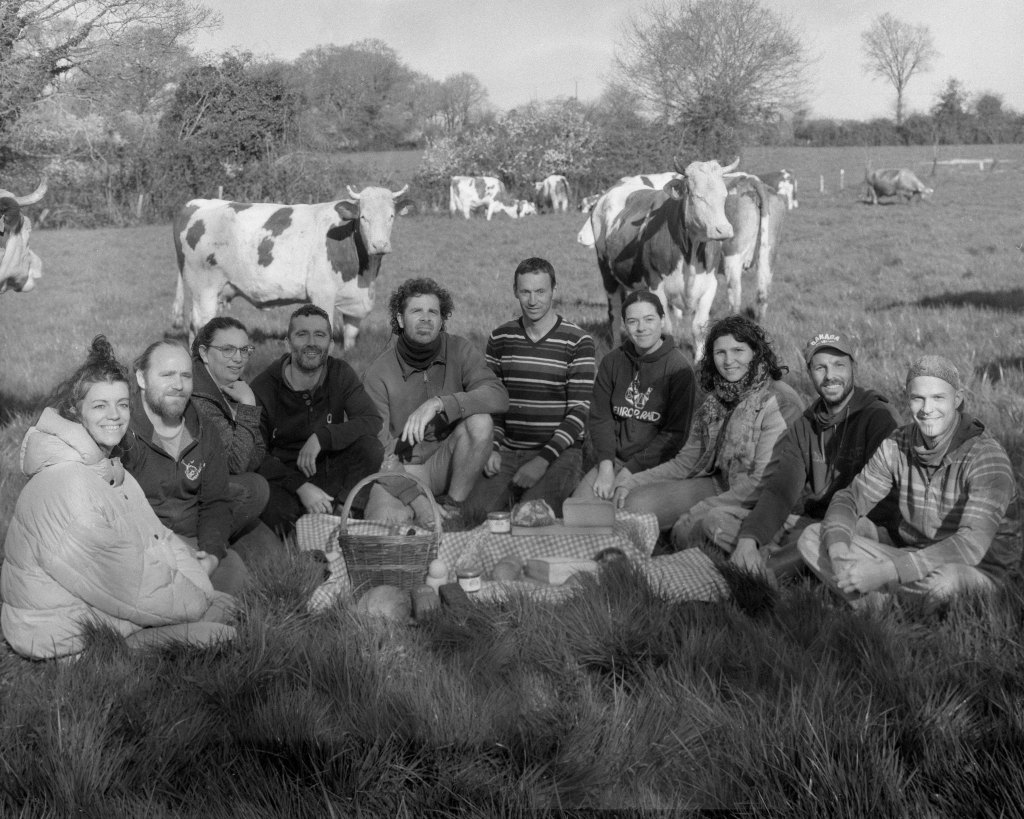 Loin de l’enracinement des modèles agricoles épuisés, ielles cultivent un nouvel équilibre, entre traditions et innovations, et sèment les graines d’une agriculture plus respectueuse des sols, des animaux et des humain·e·s. Aujourd’hui, entre l’élevage de vaches laitières et de porcs plein air, la culture de céréales, la fromagerie et le fournil, la ferme fait vivre une équipe de onze personnes : associés, salarié·e·s à temps plein ou partiel, apprenti·e·s et stagiaires.