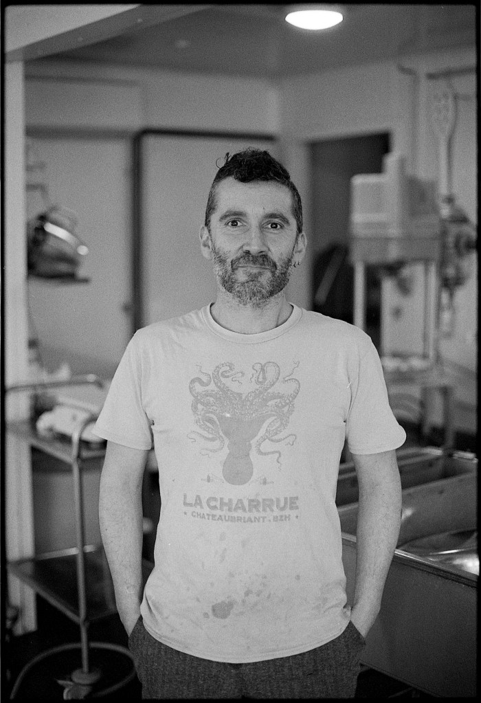 À quelques kilomètres de Châteaubriant, la ferme de La Rousselière se fond dans le paysage, nichée au creux du lieu-dit éponyme, entre prairies et bocage. Exploitée depuis des décennies, elle connaît un tournant décisif le 1er avril 2018, lorsque deux enfants du couple propriétaire, Aurélien et Ludo, rejoints par Jeremy, un ami, reprennent le flambeau. Avec une ambition forte : poursuivre l’histoire de la ferme tout en diluant l’emprunte familiale et en adaptant l’exploitation aux enjeux contemporains. À l’image de leur volonté initiale, les personnes qui composent la ferme imaginent transformer leurs activités en SCOP (Société Coopérative et Participative), un modèle plus horizontal où chaque décision se prend collectivement.