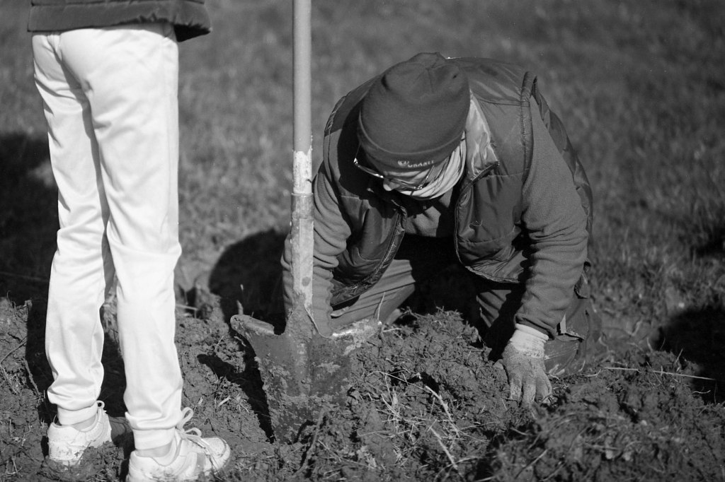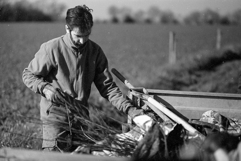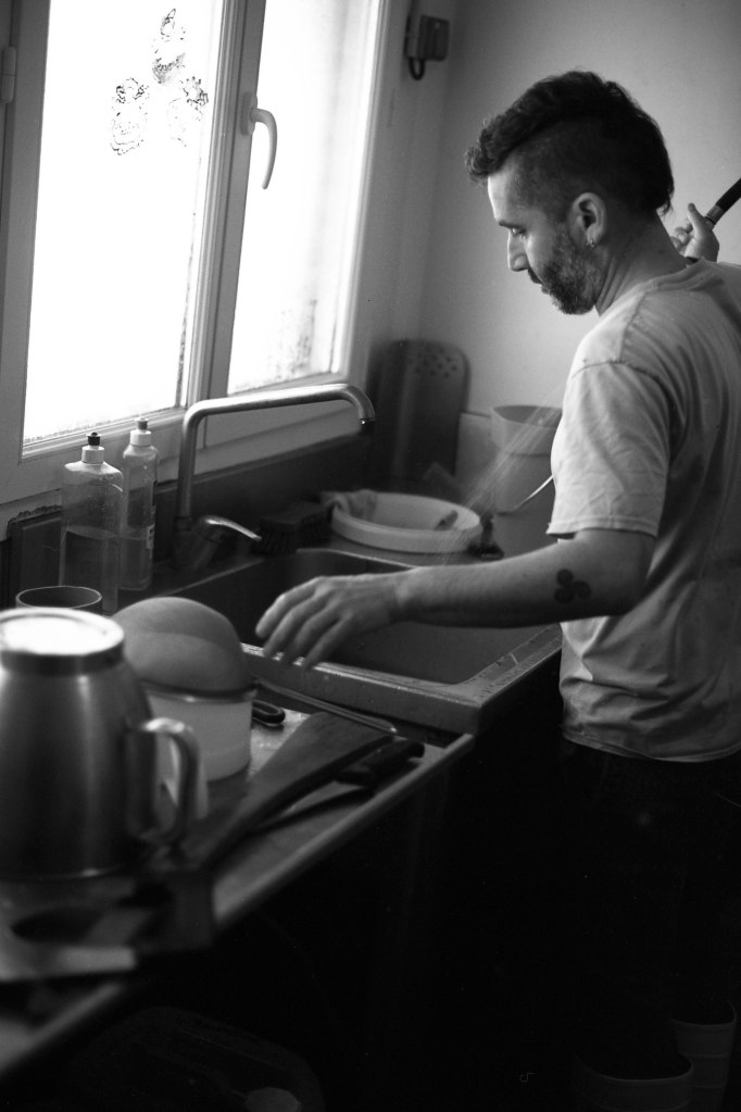 Produire du lait et le transformer directement est une part essentielle de leur activité. Mais la quête d’autonomie va au-delà : ielles cultivent aussi les sols pour nourrir leurs animaux et confectionner leur pain. Lorsque les vaches ne requièrent pas d’attention et que les plants prennent le temps de pousser, la paresse n’a pas sa place. L’entretien des haies est régulier, la coupe du bois constante, nécessaire à la cuisson du pain, et les tâches administratives infinies.
