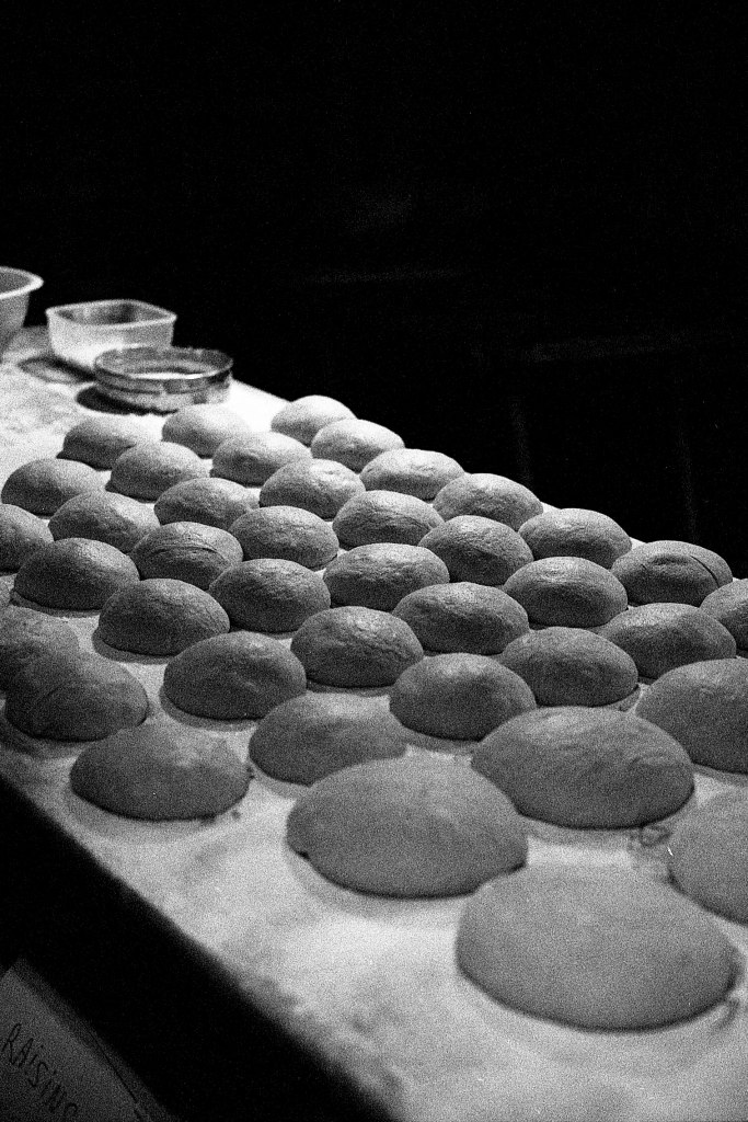 À son arrivée, La Huche rejoint Aurèle, et ensemble, ils lancent les premières fournées. Autour d’eux, les étagères se remplissent, et les pâtons levés attendent patiemment leur tour.