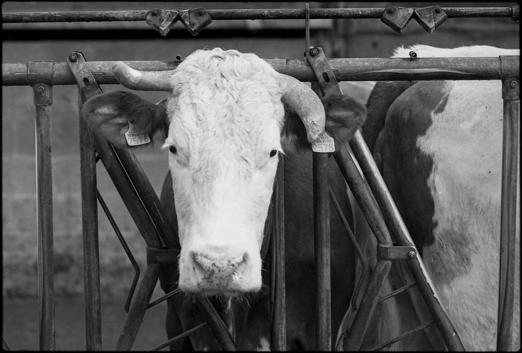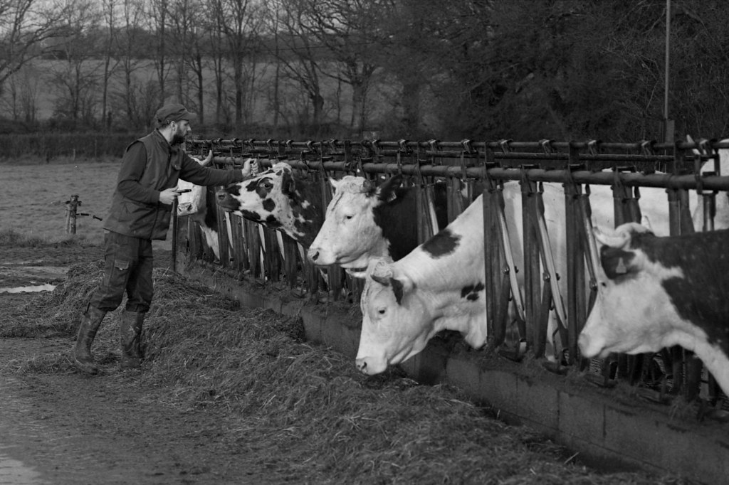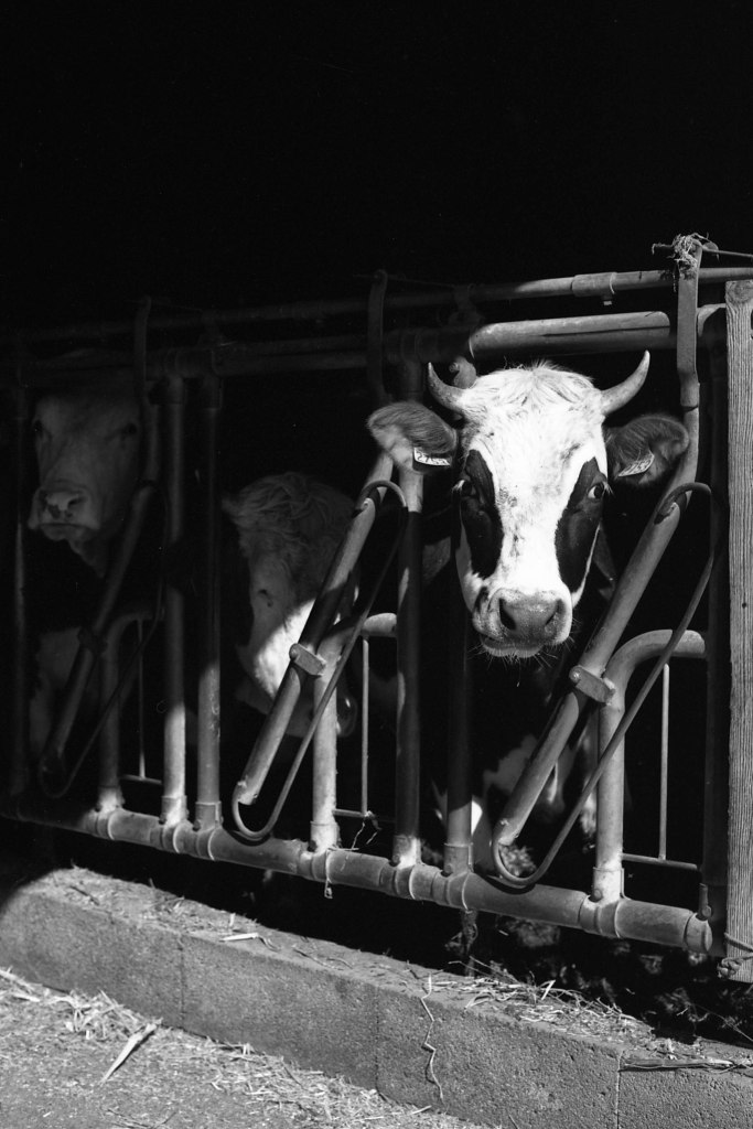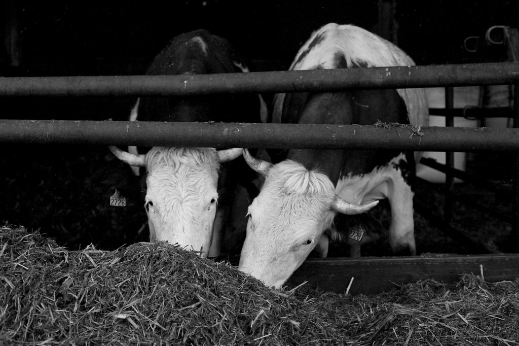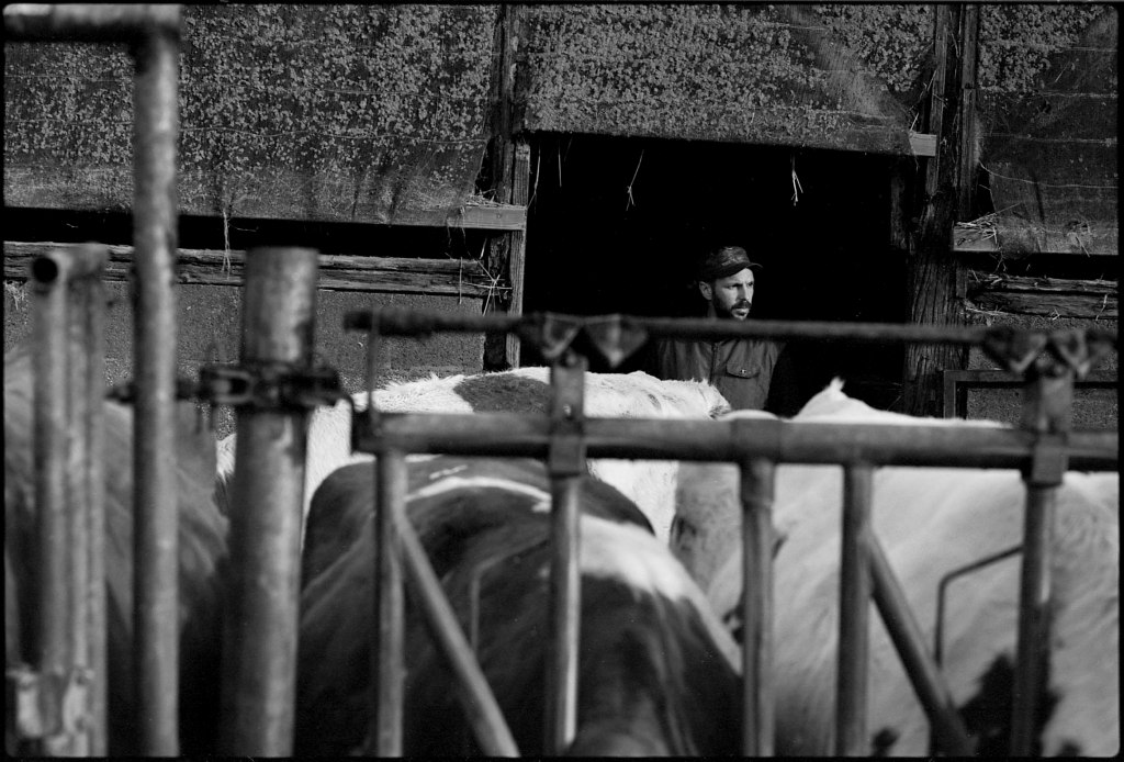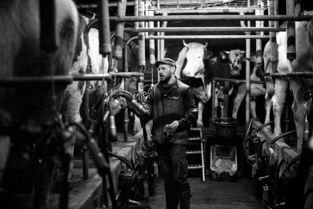 Lorsque je rejoins Ludo un matin de février, le soleil peine encore à percer l’horizon. Dans l’étable, seule la lumière artificielle des néons éclaire les silhouettes massives des vaches allongées sur la paille. En cette saison, elles passent l’essentiel de leur temps à l’abri. Ludo, lui, attend avec impatience le retour des beaux jours, lorsque le troupeau pourra à nouveau paître dans les prairies verdoyantes.