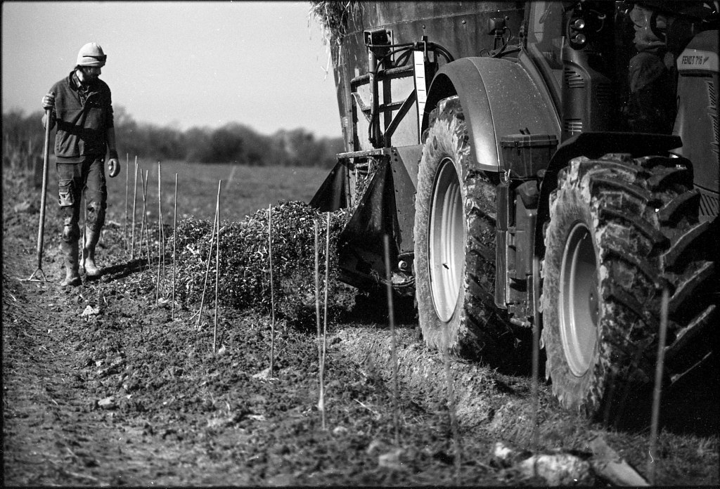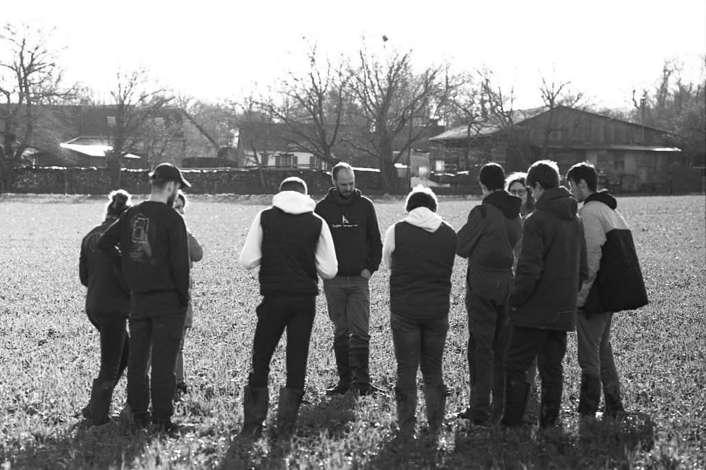 À La Rousselière, l’agriculture ne se limite pas aux champs et aux étables ; elle se raconte, s’explique et se vit aux côtés de celles et ceux qui la façonnent. Avec la conviction que le lien entre paysan·nes et citoyen·nes est essentiel. Les membres de la ferme multiplient les moments d’échange. Parfois avec des écoliers, comme lors de la journée de plantation d’arbres bocagers organisée avec l’association Sylvagraire, où de jeunes mains découvrent la patience du geste et l’importance des haies pour les sols et la biodiversité. D’autres fois, ce sont des apprenant·es en formation agricole qui viennent découvrir la ferme le temps d’une visite, échangeant avec les éleveurs sur les réalités du métier et les choix qui façonnent leur quotidien. Puis, il y a les stagiaires et les apprenti·e·s, comme Juliette, venue parfaire son certificat de spécialisation en conduite d’un élevage bovin lait, observant avec minutie les gestes d’Anthony et Ludo, cherchant à en comprendre chaque subtilité.