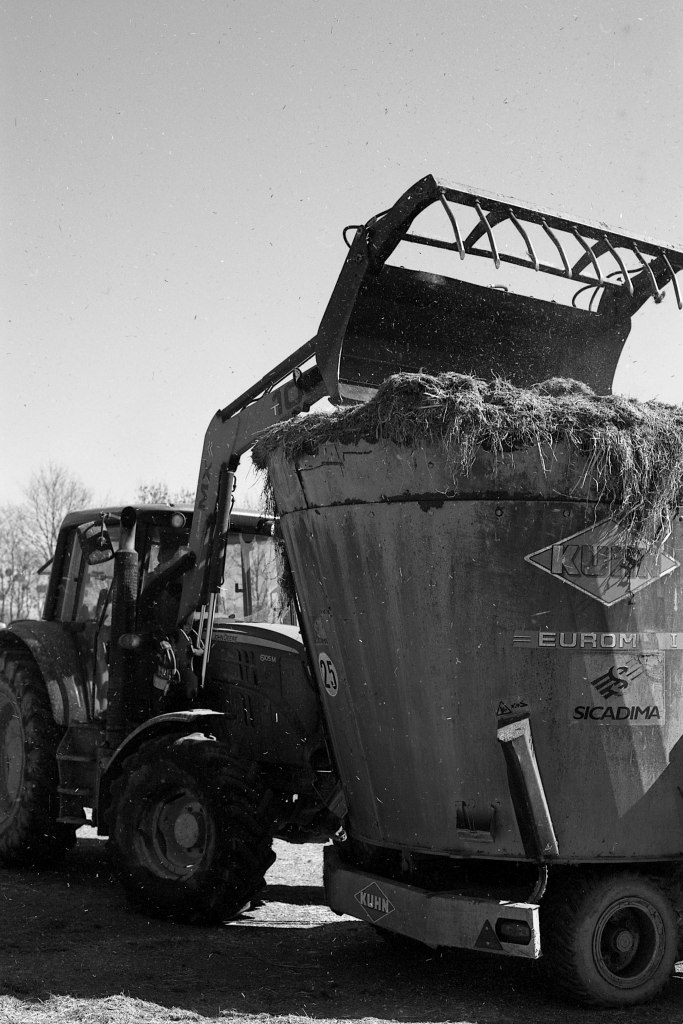 Attelée à un tracteur, la mélangeuse est tel un robot mixeur géant. À des doses précises, les aliments sont associés en fonction des besoins de chaque troupeau. Selon qu’elles soient vaches laitières ou génisses, en stabulation ou au pâturage, leur alimentation varie. Certaines, en fonction de leur production laitière, reçoivent des compléments pour pallier l’effort fourni. Tantôt auprès de leurs protégées, tantôt au volant de leur géant d’acier, Ludo et Anthony multiplient les allers-retours sur la ferme. Dans une routine ponctuée d’aléas, il ne semble jamais y avoir assez d’heures dans une journée.