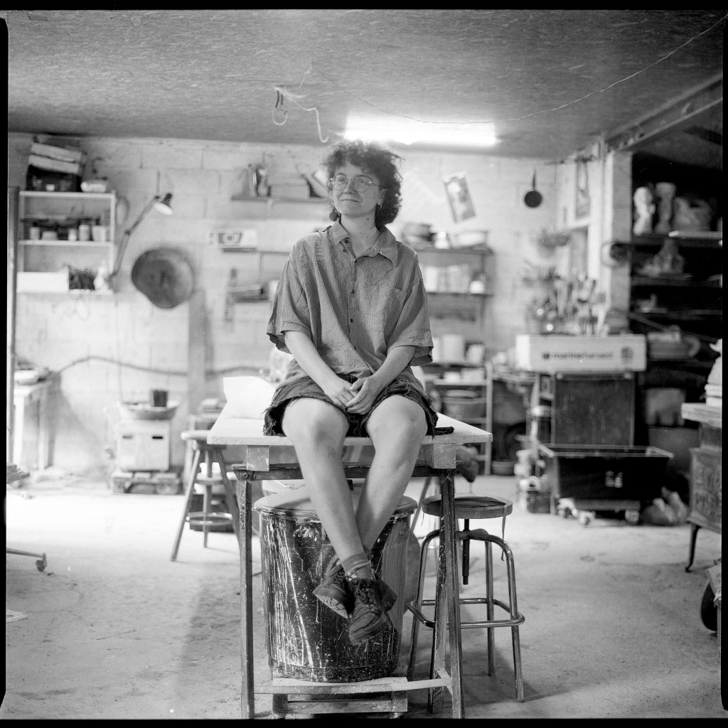 Quelques heures de route me conduisent à travers les départementales sinueuses de Bourgogne, jusqu’au paisible village de Chapaize, où vivent à peine trois cents âmes. Là, entre la terrasse ensoleillée d’un restaurant et la devanture vitrée d’une boutique, une façade débordante de végétation attire mon regard. Posées au sol, quelques poteries aux formes singulières semblent accueillir les visiteurs. À hauteur d’yeux, une inscription discrète annonce : « LA FOURMILIÈRE – ATELIER CÉRAMIQUE », suivi d’un mot simple : « OUVERT ». Je pousse la porte. Une petite boutique m’apparaît, baignée d’une lumière douce émanant des plafonniers. Trois créatrices y exposent leurs pièces : Tahia, Nitsa et Elina. N’ayant pour seule réponse le silence, je me laisse guider par les flèches qui m’invitent à découvrir l’atelier.