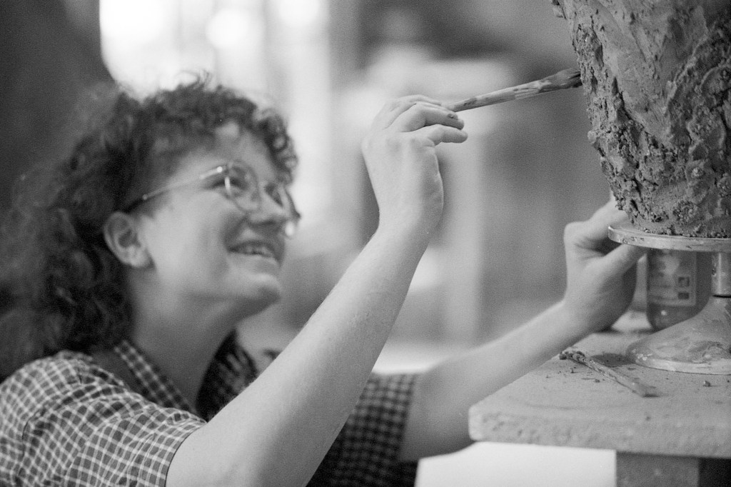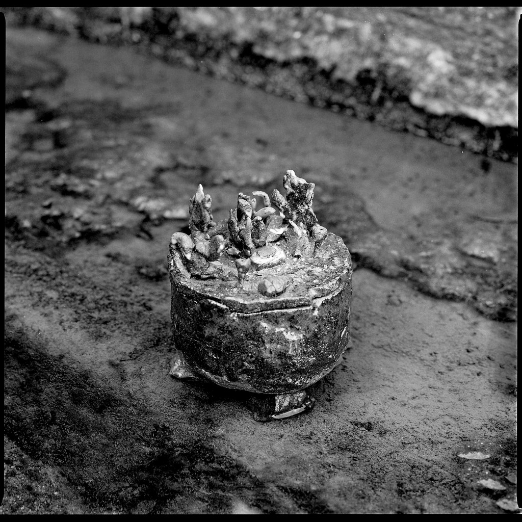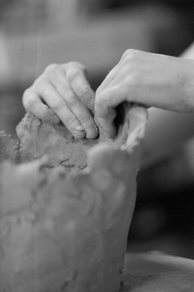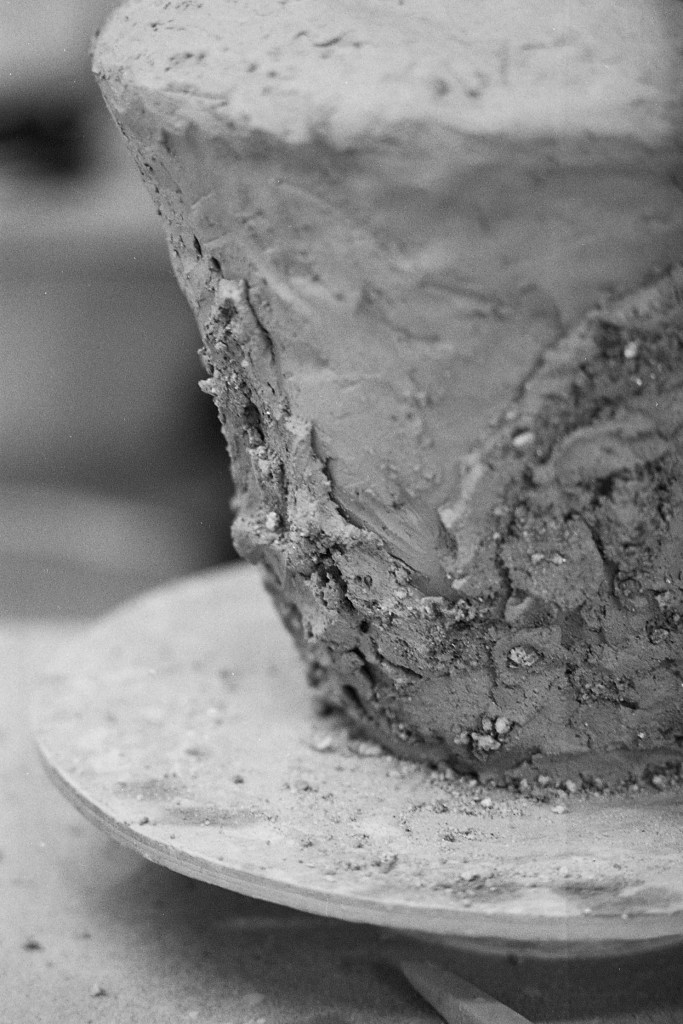 Si Elina ne prélève pas directement son argile dans la nature, elle en récupère cependant auprès d’anciennes manufactures ou de dons. Elle refuse d’acheter des pains de terre prêts à l’emploi : « Si je ne fais pas tout du début à la fin, la pièce perd de son histoire », me confie-t-elle. Alors, elle broie, émiette, hydrate, malaxe, sèche, puis mélange — une alchimie patiente. Cette terre, qu’elle ne souhaite pas utiliser brute, s’enrichit parfois de minéraux, selon l’intuition du moment. Car pour Elina, tout réside dans la texture. Sa pratique, issue d’une expérience sensorielle, donne forme à une matière vivante.